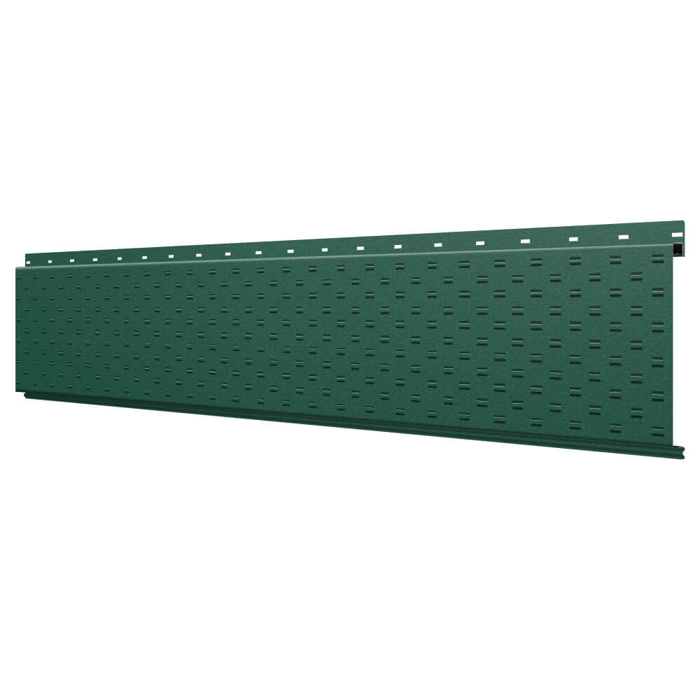 Линеарная потолочно-стеновая панель с ПЕРФОРАЦИЕЙ для вентиляции цвет RAL6005 Зеленый Мох Стальной Бархат применяется в качестве софитов для подшивы крыши, наружной и внутренней отделки потолков, стен, фронтонов фасада дома в Атырау.