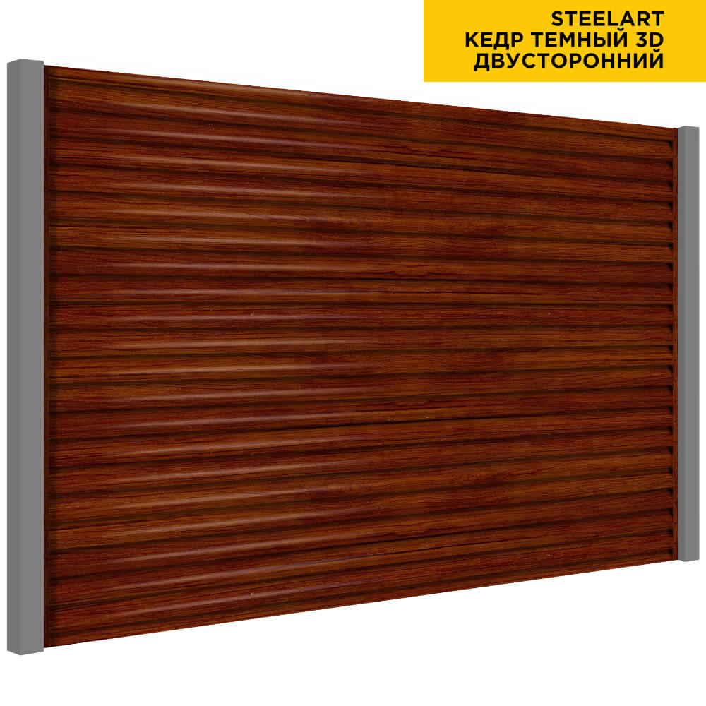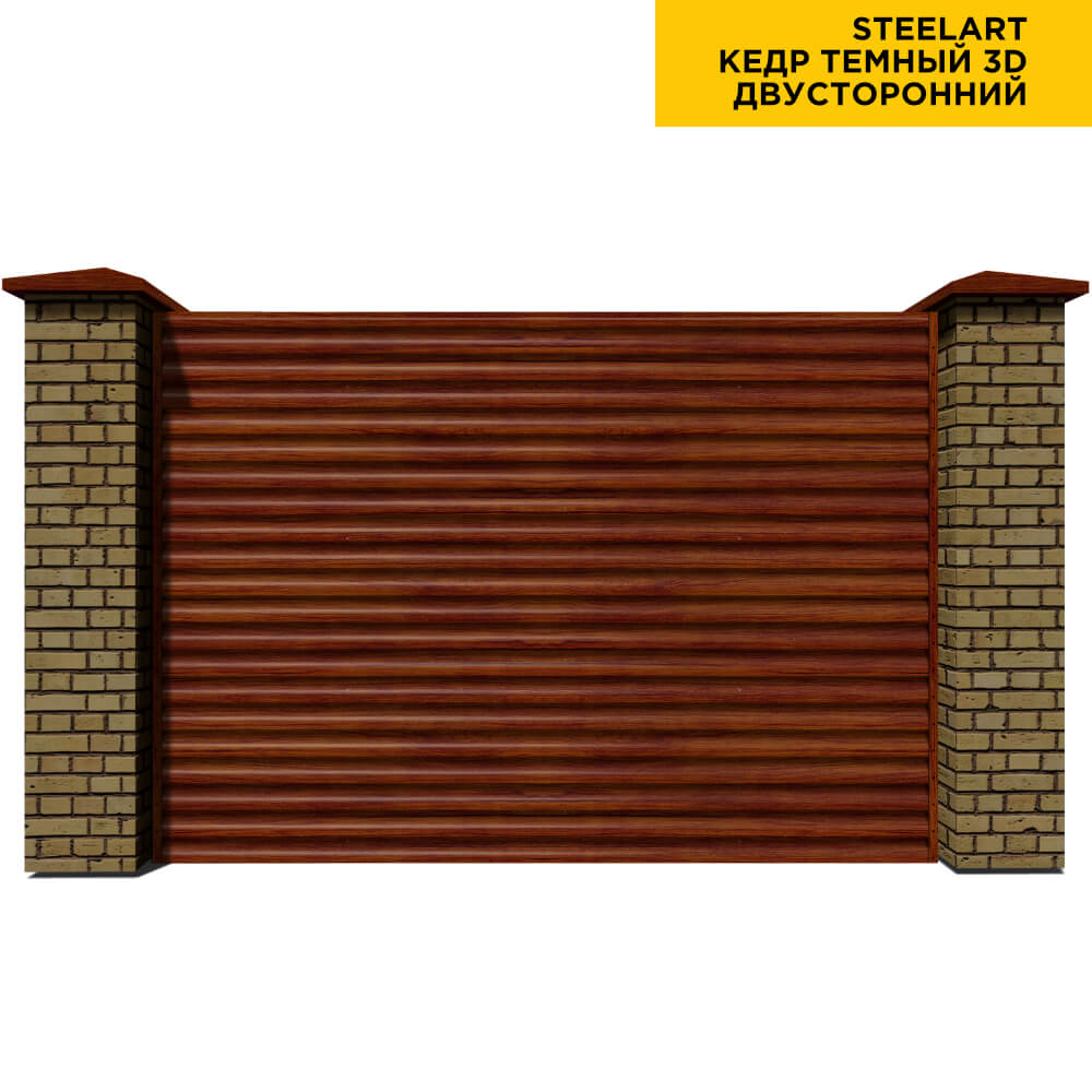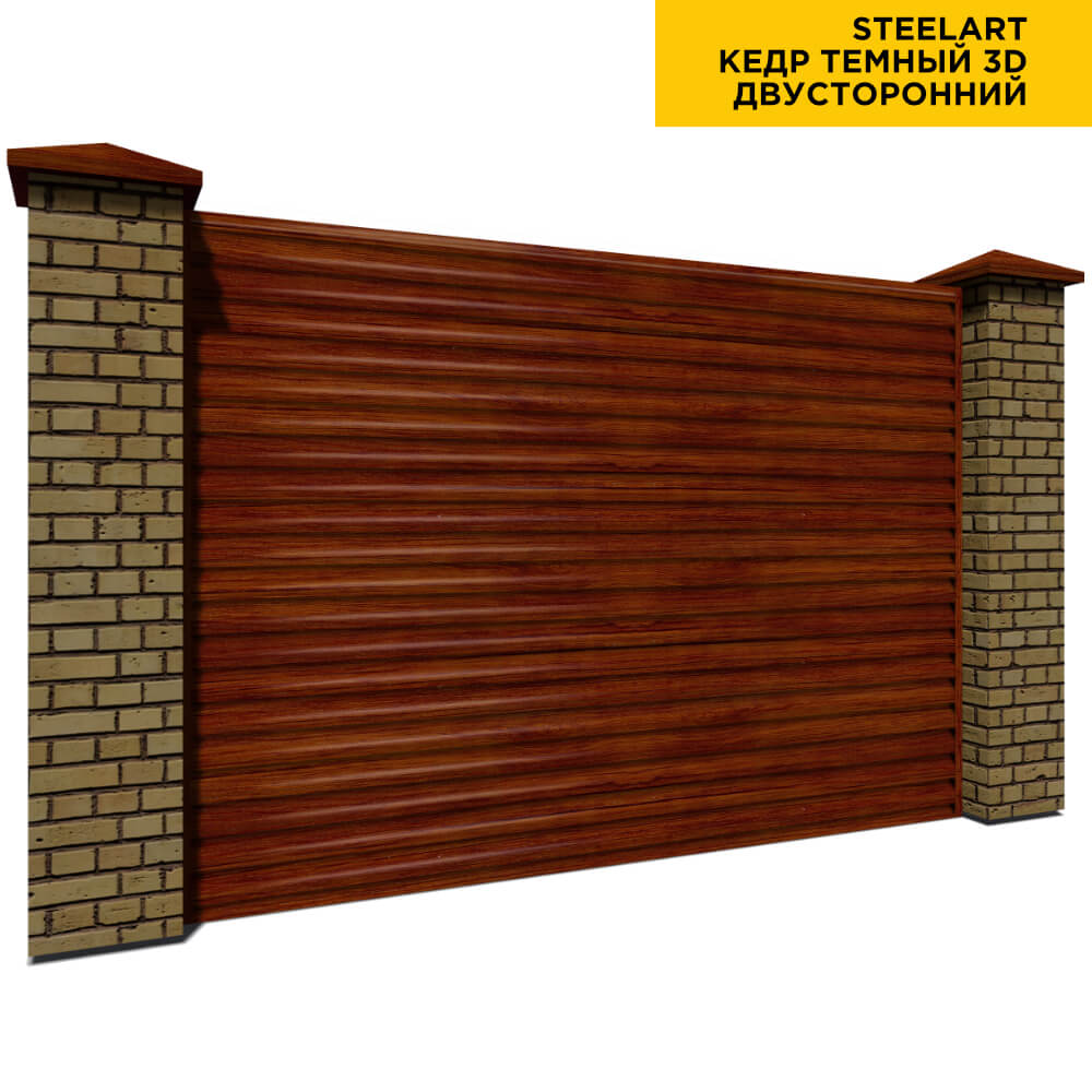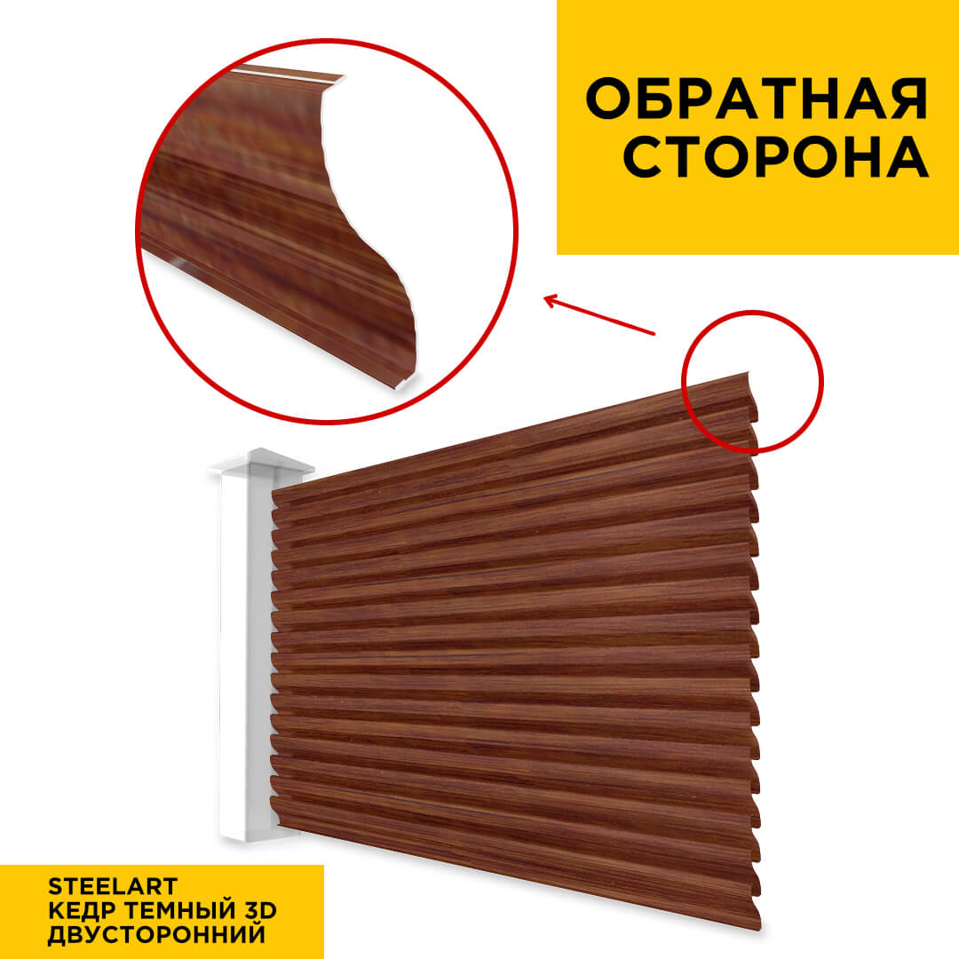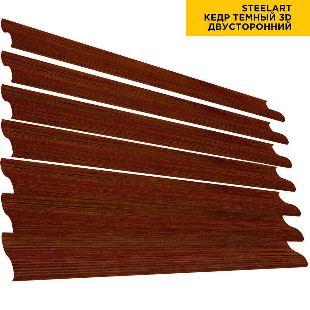 Ламель Еврожалюзи металлическая S-образная, цвет под дерево Кедр Темный 3D SteelArt Россия двухстороннее покрытие, длина любая кратно 1см под заказ - для забора-жалюзи, беседки, перголы в Атырау