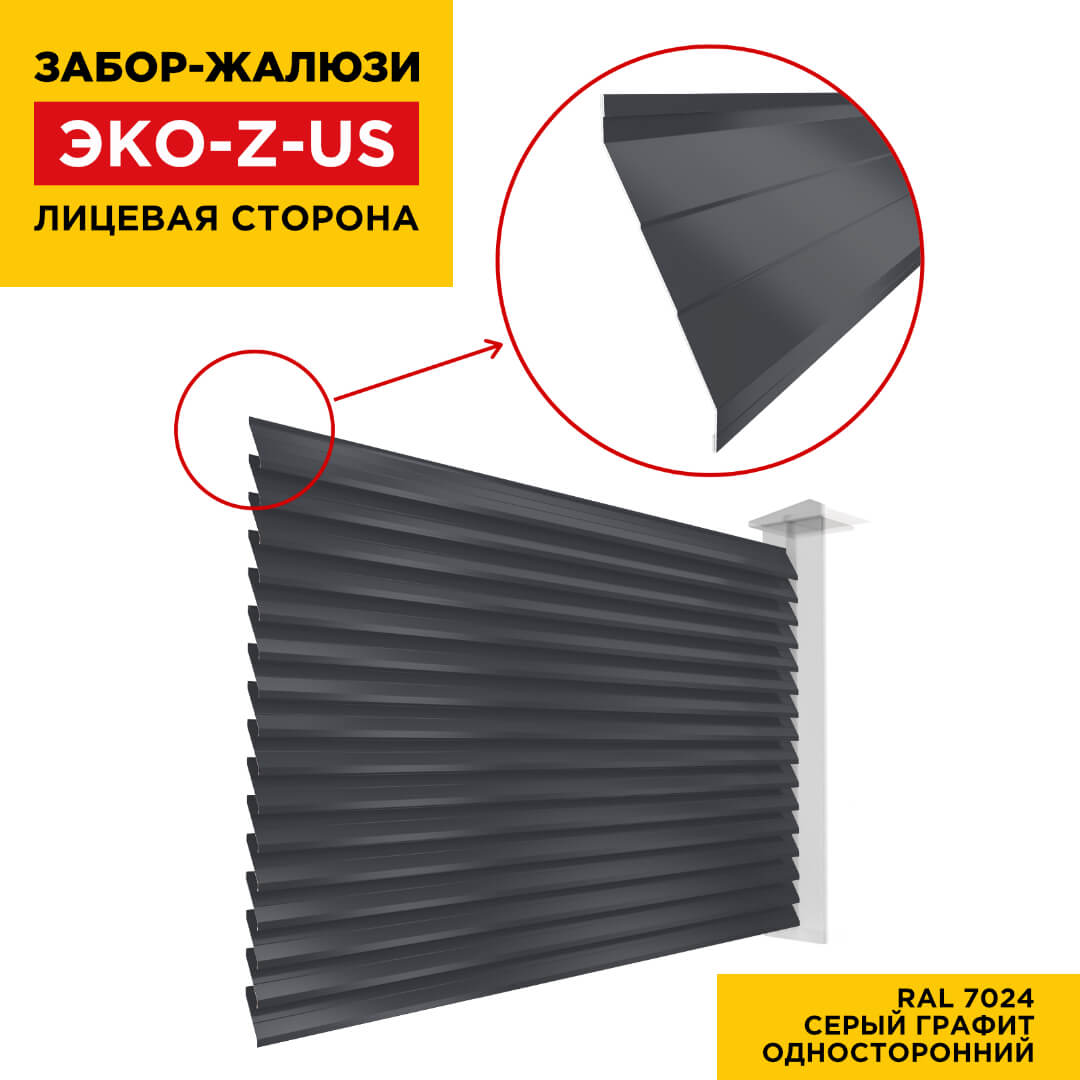 Ламель ЭКО-Z-US усиленная RAL7024 Серый Графит для забора-жалюзи