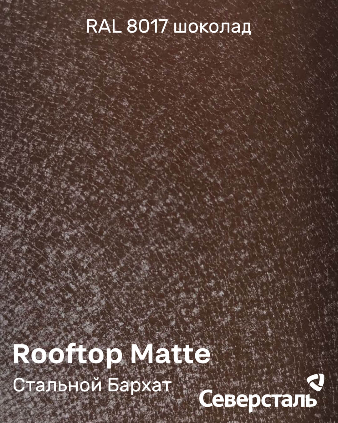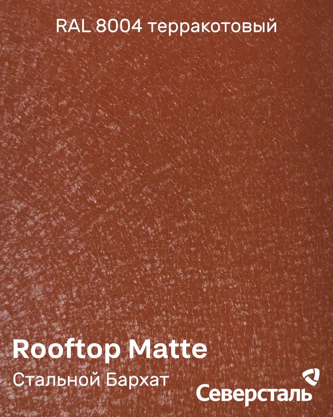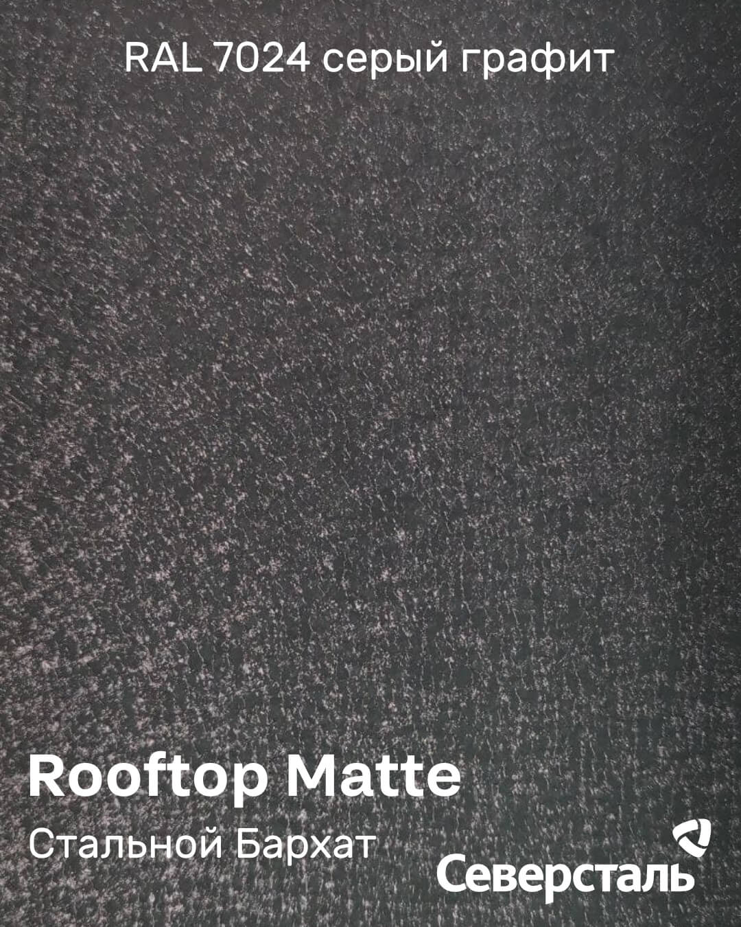 Металлочерепица Rooftop Matte Стальной Бархат в Атырау - полный каталог и палитра доступных цветов металлочерепицы Монтеррей, Каскад, Банга, Арарат, Геркулес, Геркулес модульный с покрытием Rooftop Matte (Стальной Бархат) производства Северсталь для кровли крыши в Атырау.
